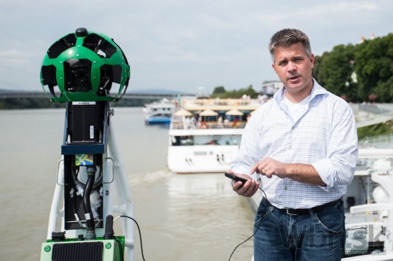 Zástupca spoločnosti Google Ulf Spitzer počas TB spoločnosti Google o projekte Street View nainštalovanej na výletnej lodi Treasures. Bratislava, 19. august 2014. Foto: SITA/Jozef Jakubčo