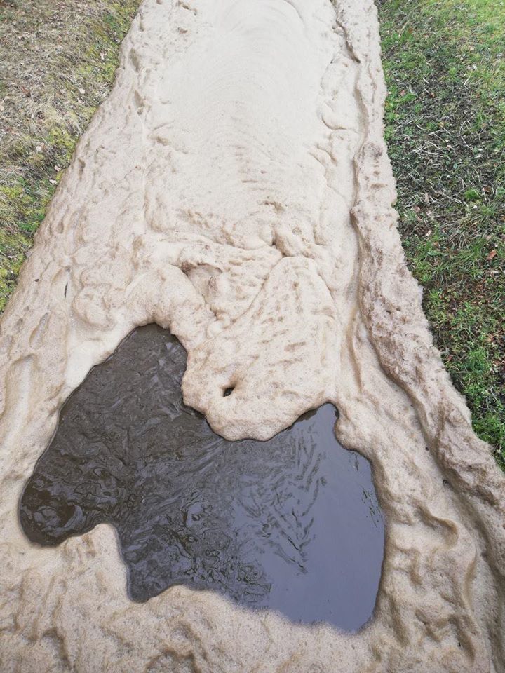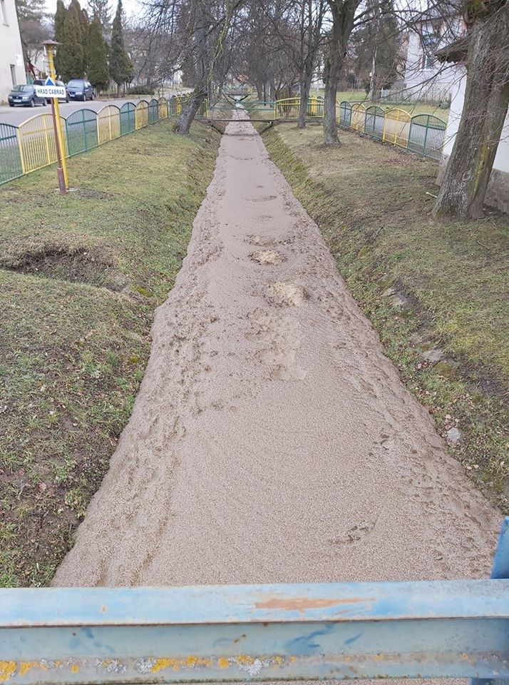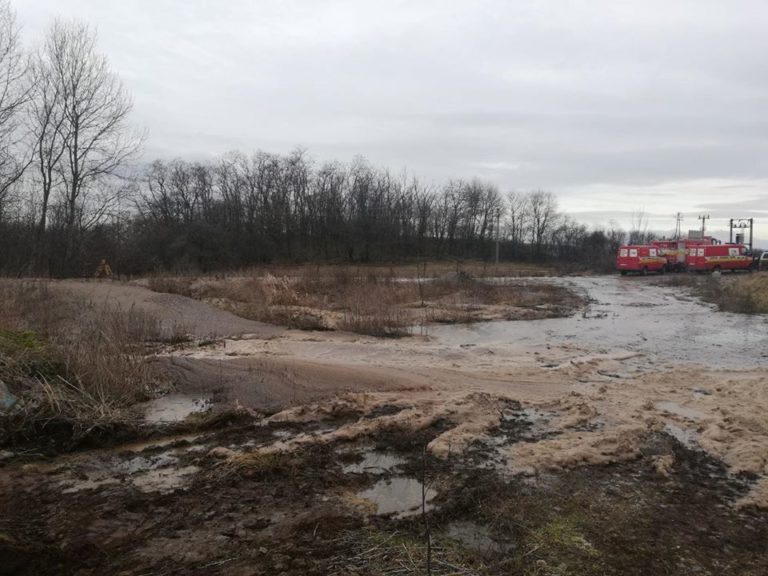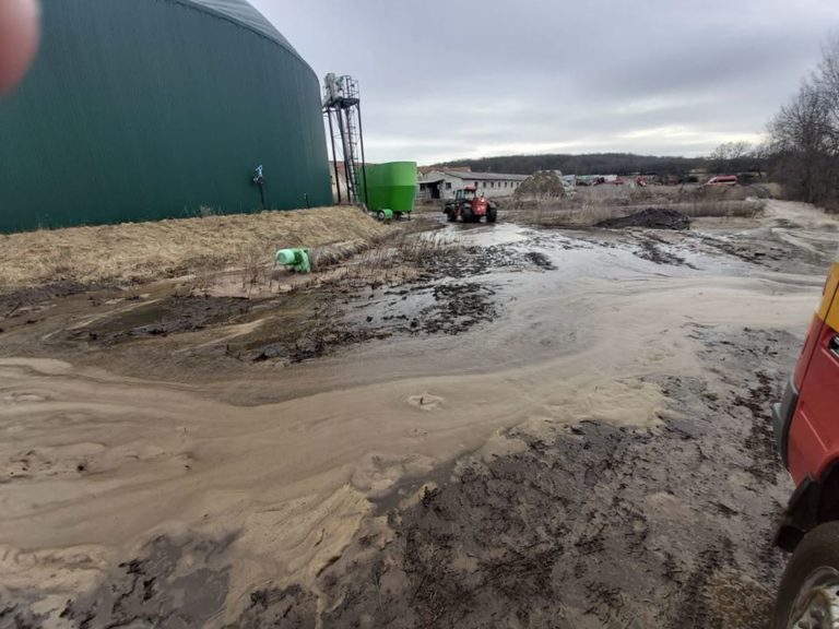Z poškodeného zásobníka unikol digestát (vyhnitý biokal po výrobe bioplynu, pozn. SITA). Čabradský Vrbovok, 6. február 2020. Foto: www.facebook.com.