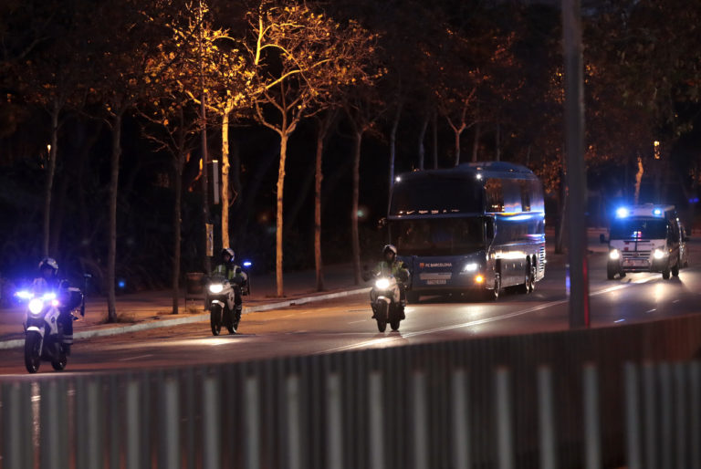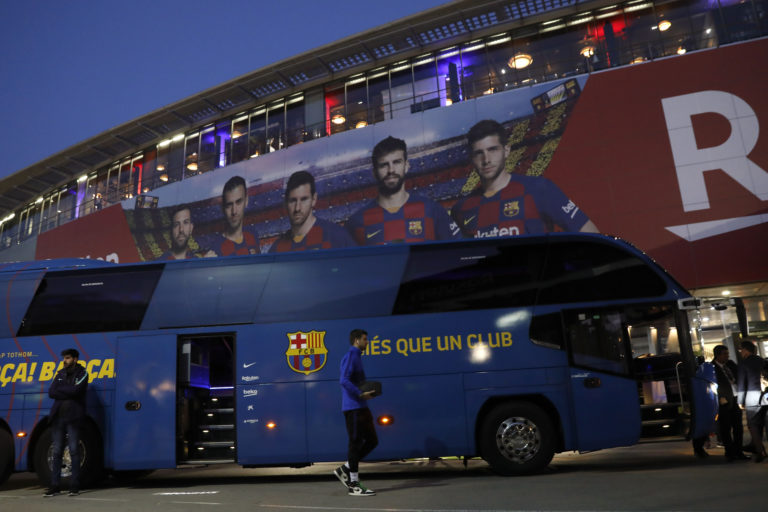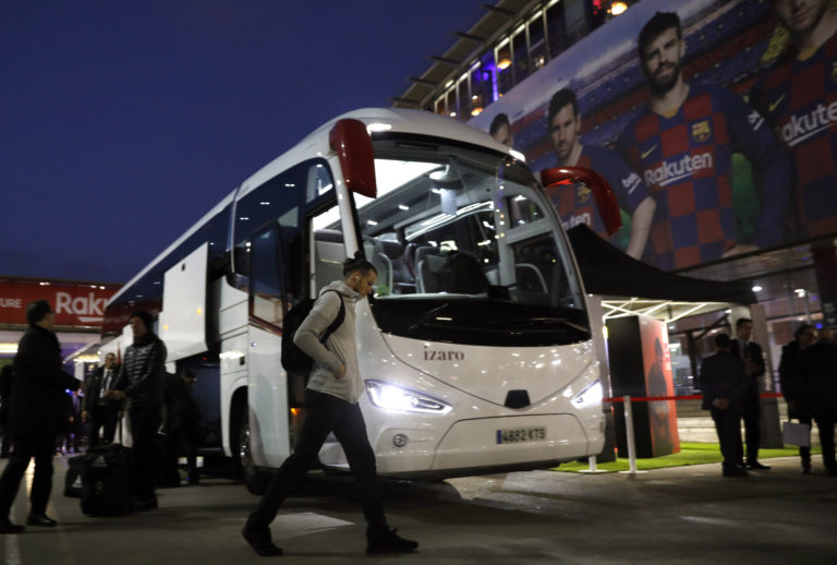 Hráči FC Barcelona prichádzajú na štadión Camp Nou pred zápasom proti Realu Madrid. Barcelona, 18. december 2019. Foto: SITA/AP.