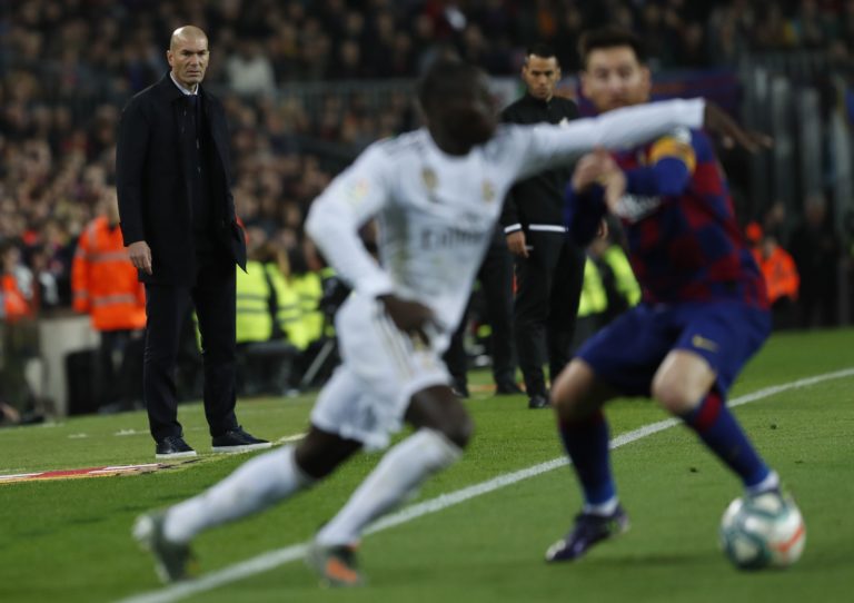 Tréner "bieleho baletu" Zinedine Zidane počas zápasu proti FC Barcelona v rámci 10. kola La Liga. Barcelona (Camp Nou), 18. december 2019. Foto: SITA/AP.