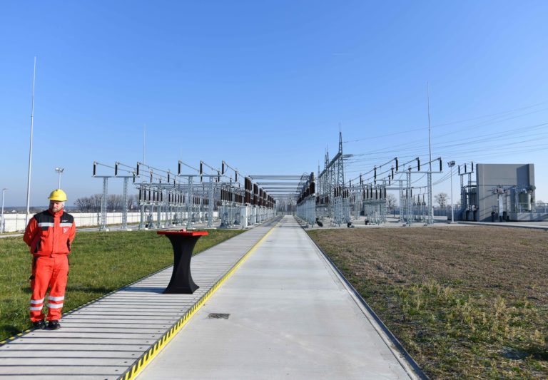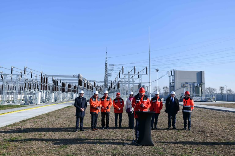 Predseda a generálny riaditeľ ZSE Markus Kaune (v popredí) počas slávnostného uvedenia Elektrickej stanice Borský Svätý Jur 110/22 kV do prevádzky. Borský Svätý Jur, okr. Senica, 9. február 2023. Foto: SITA/Martin Medňanský