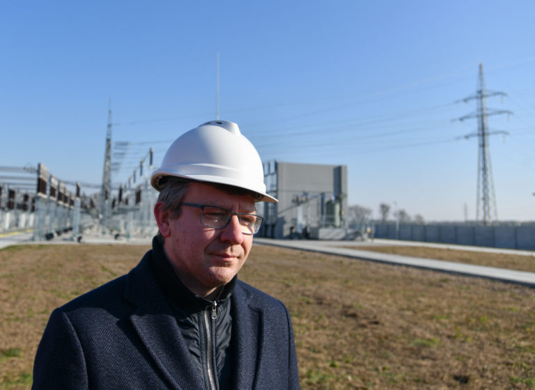 Predseda a generálny riaditeľ ZSE Markus Kaune počas slávnostného uvedenia Elektrickej stanice Borský Svätý Jur 110/22 kV do prevádzky. Borský Svätý Jur, okr. Senica, 9. február 2023. Foto: SITA/Martin Medňanský