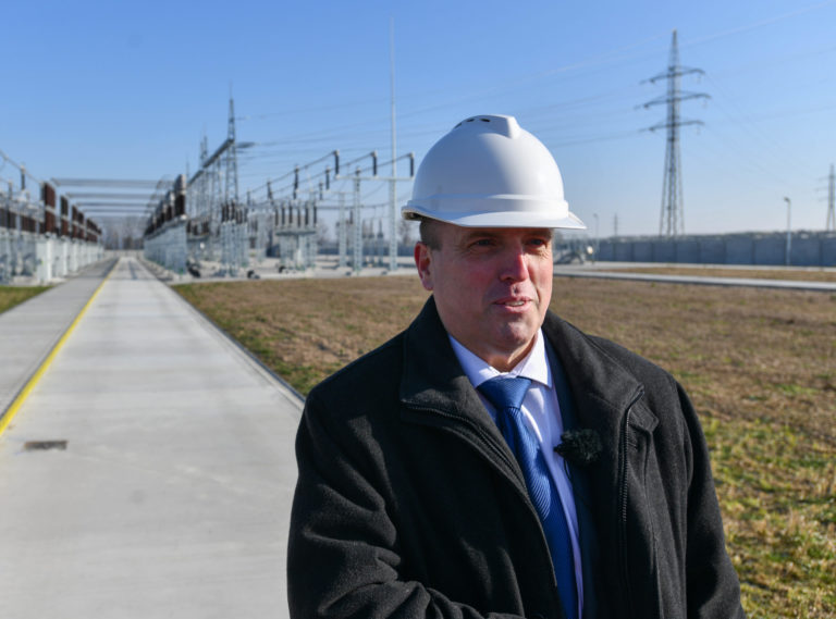 Štátny tajomník Ministerstva hospodárstva SR Peter Gerhart počas slávnostného uvedenia Elektrickej stanice Borský Svätý Jur 110/22 kV do prevádzky. Borský Svätý Jur, okr. Senica, 9. február 2023. Foto: SITA/Martin Medňanský