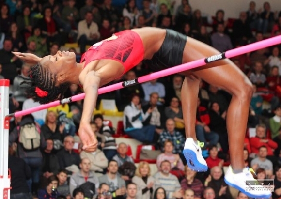 Výškarka Chaunté Lowe (USA) počas 19. ročníka medzinárodného halového výškarského mítingu Europa SC High Jump 2012, ktorý sa uskutočnil v Športovej hale Štiavničky. Banská Bystrica, 8. február 2012. Foto: SITA/Branislav Račko