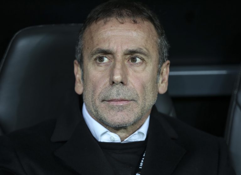 Tréner Besiktasu Istanbul Abdullah Avci počas zápasu K-skupiny Európskej ligy proti Slovanu Bratislava. Istanbul (Besiktas Park), 28. november 2019. Foto: SITA/AP.