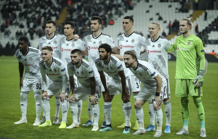 Hráči Besiktasu Istanbul pred zápasom proti Slovanu Bratislava v K-skupine Európskej ligy. Istanbul (Besiktas Park), 28. november 2019. Foto: SITA/AP.