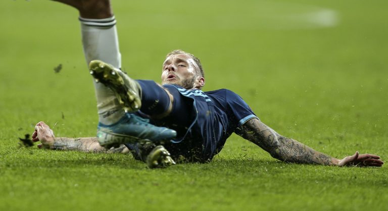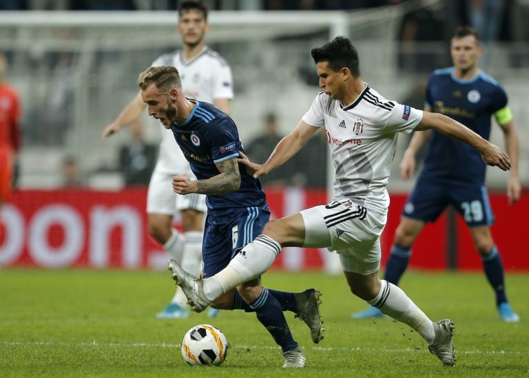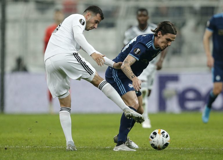 Joeri de Kamps (ŠK Slovan Bratislava) počas zápasu proti Besiktasu Istanbul v K-skupine Európskej ligy. Istanbul (Besiktas Park), 28. november 2019. Foto: SITA/AP.