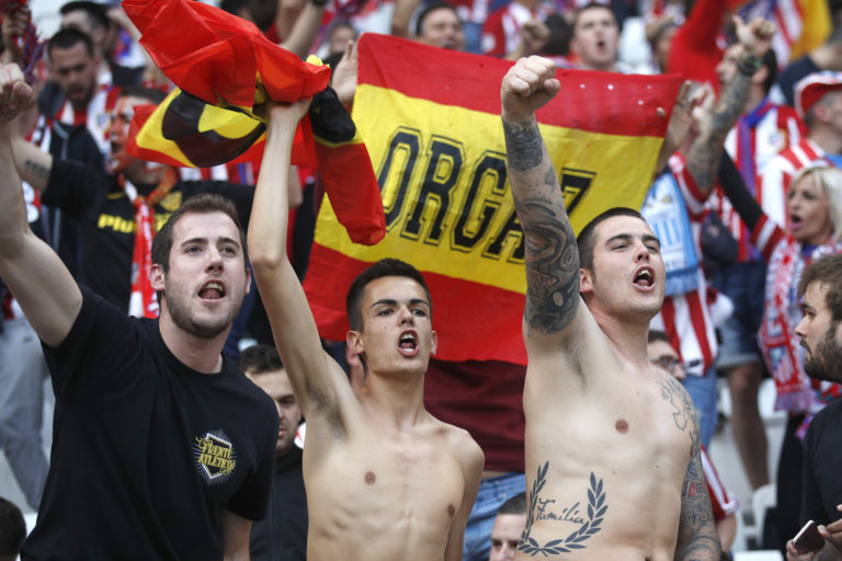 Fanúšikovia Atlética Madrid počas finálového zápasu Európskej ligy. Lyon, 16. máj 2018. Foto: SITA/AP.