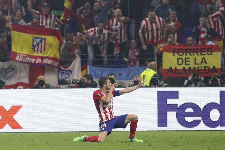 Gabi z Atlética Madrid sa teší z gólu v sieti Olympique Marseille vo finále Európskej ligy, v ktorom jeho tím zvíťazil 3:0. Lyon, 16. máj 2018. Foto: SITA/AP.