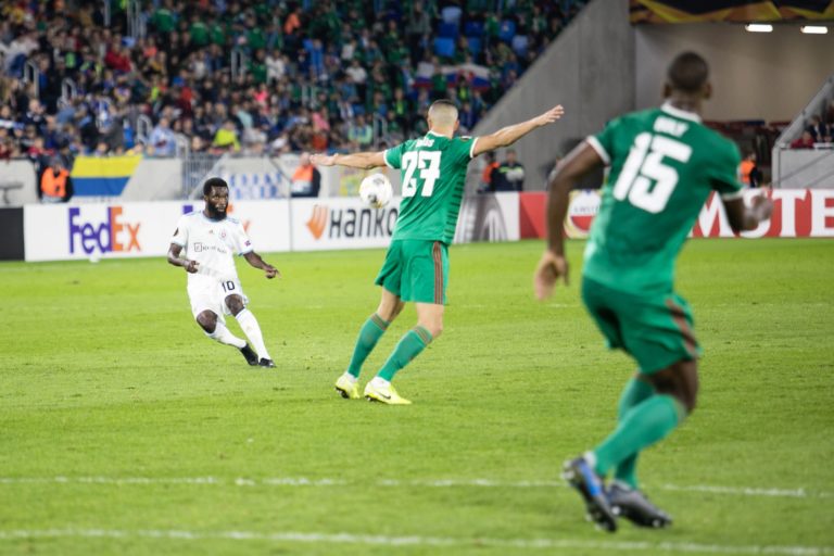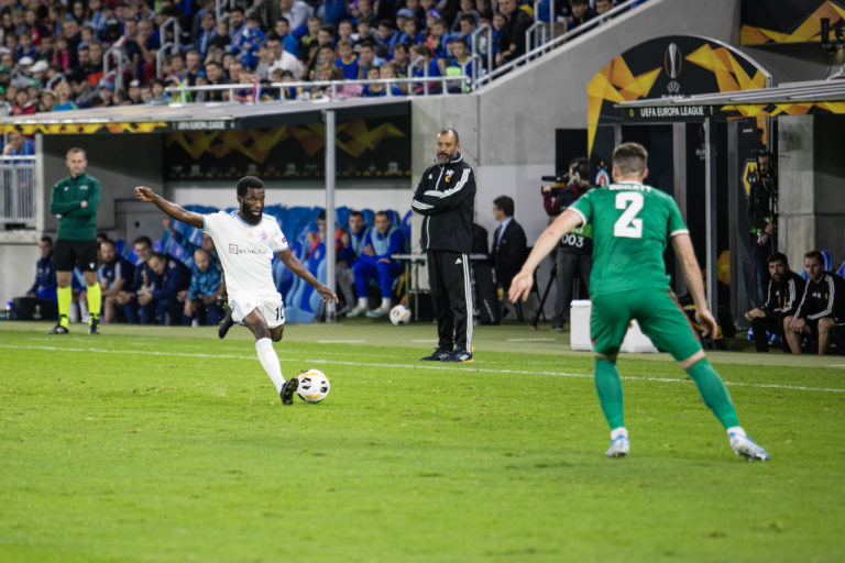 Ibrahim Rabiu (ŠK Slovan Bratislava) počas zápasu K-skupiny Európskej ligy proti Wolverhamptonu Wanderers. Bratislava, 24. október 2019. Foto: SITA/Jana Birošová.