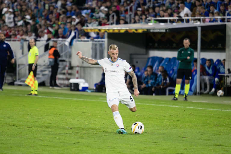 Joeri de Kamps (ŠK Slovan Bratislava) počas zápasu K-skupiny Európskej ligy proti Wolverhamptonu Wanderers. Bratislava, 24. október 2019. Foto: SITA/Jana Birošová.