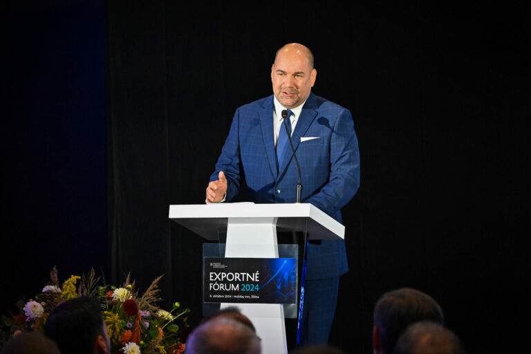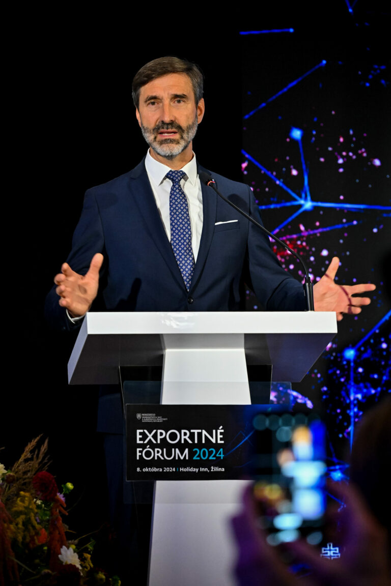 Minister cestovného ruchu a športu SR Dušan Keketi počas 4. ročníka najväčšieho podujatia ekonomickej diplomacie na Slovensku pod názvom Exportné fórum 2024 v Žiline, ktorého ústrednou témou bolo 20 rokov členstva SR v Európskej únii - záruka trvalo udržateľného rozvoja Slovenska. Žilina, 8. október 2024. Foto: SITA/MZVaEZ SR