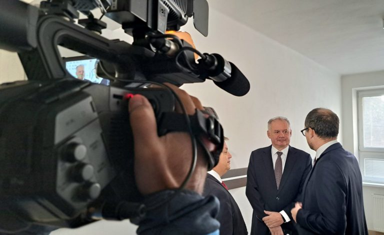 Zľava: Obhajca Patrik Benčík, obvinený bývalý prezident SR Andrej Kiska a advokát Peter Kubina pred začatím hlavného pojednávania v kauze KTAG na Okresnom súde v Poprade. Poprad, 11. októbra 2023. Foto: SITA/Mária Frisová
