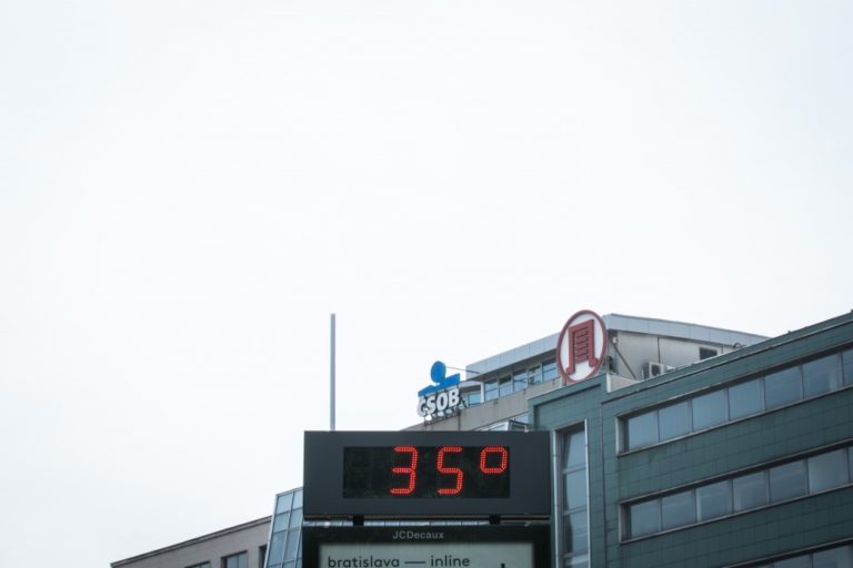 Teplomer v centre hlavného mesta ukazuje 35 stupňov. V hlavnom meste môže byť v pondelok až 36 stupňov Celzia. Bratislava, 21. júl 2014. Foto: SITA/Jozef Jakubčo