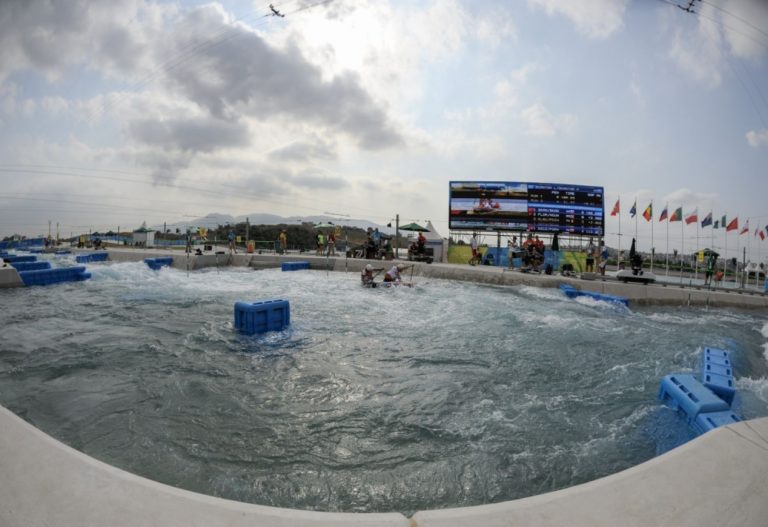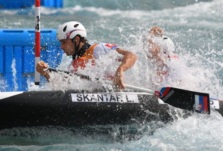 Slovenskí deblkanoisti Ladislav Škantár a Peter Škantár počas semifinálovej jazdy disciplíny C2. Rio de Janeiro, 11. august 2016. Foto: SITA/Martin Medňanský