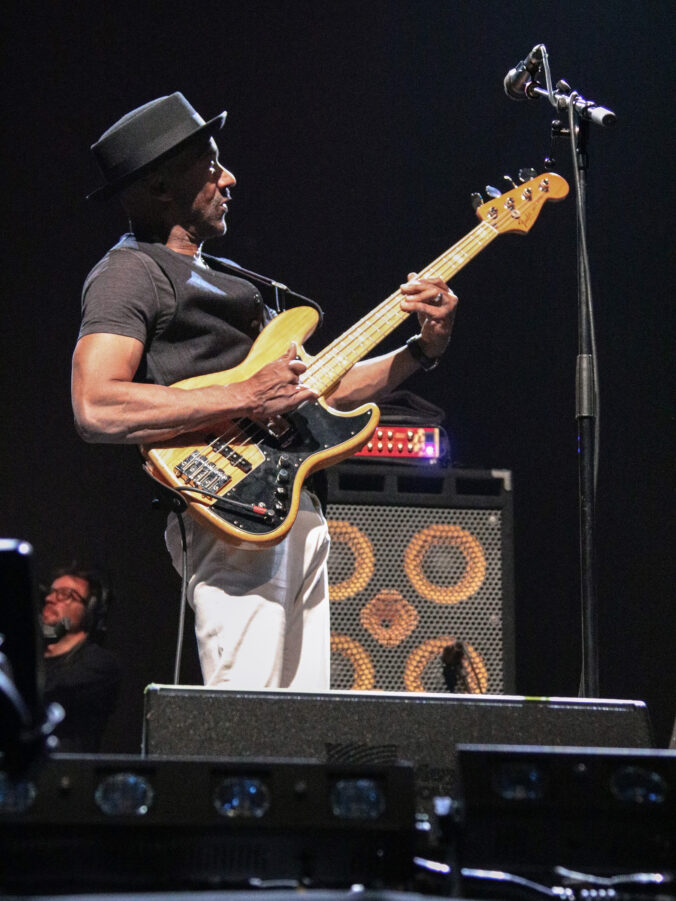Americký džezový hudobník a skladateľ, basgitarista Marcus Miller počas 50. ročníka festivalu Bratislavské jazzové dni 2025 v Inchebe. Bratislava, 25. október 2025. Foto: SITA/Andrea Mezeiová