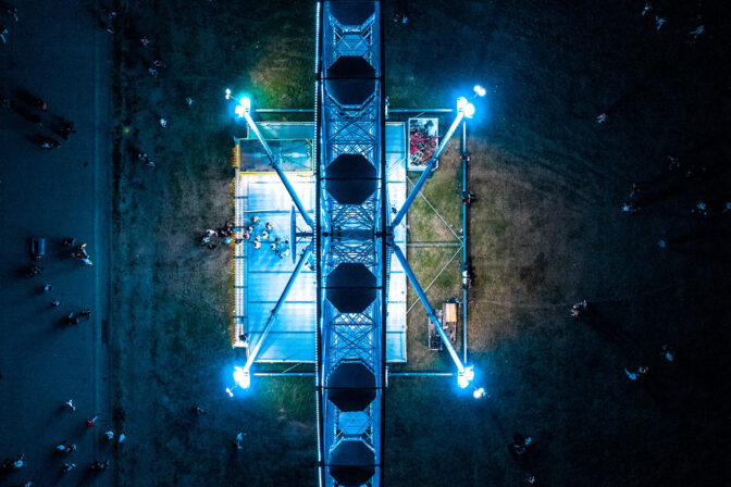 Inštalácia z kravát počas multižánrového hudobného festivalu Grape 2022 na trenčianskom letisku. Trenčín, 12. august 2022. Foto: SITA/Martin Medňanský