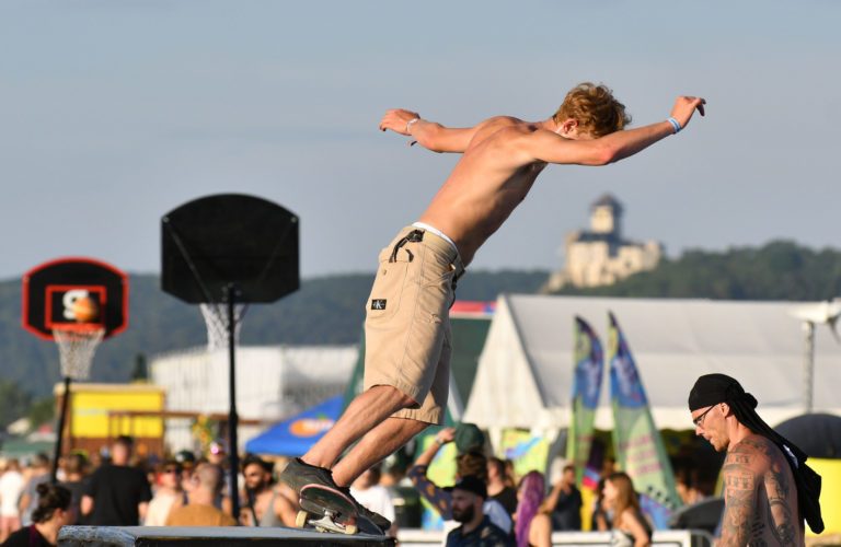 Skejter na U-rampe počas multižánrového hudobného festivalu Grape 2022 na trenčianskom letisku. Trenčín, 12. august 2022. Foto: SITA/Martin Medňanský.