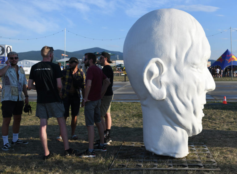 Inštalácia z kravát počas multižánrového hudobného festivalu Grape 2022 na trenčianskom letisku. Trenčín, 12. august 2022. Foto: SITA/Martin Medňanský.