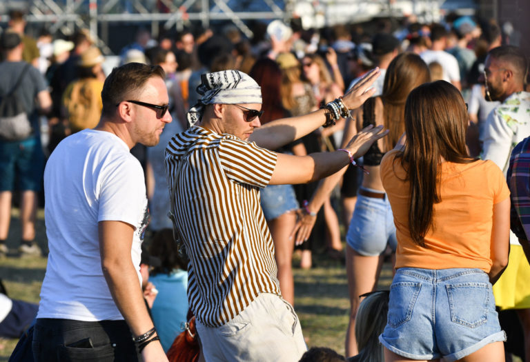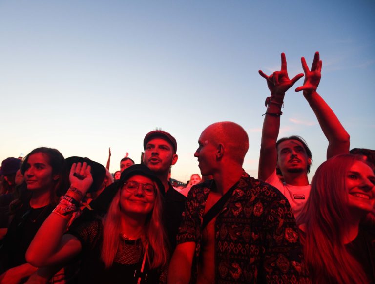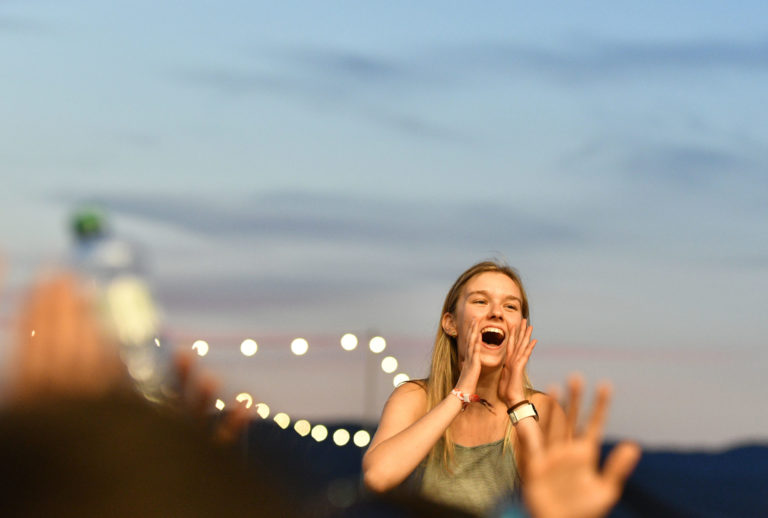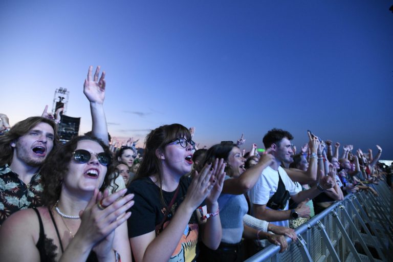 Fanúšikovia počas vystúpenia skupiny Milky Chance z Nemecka na Festivale Grape 2022 na trenčianskom letisku. Trenčín, 12. august 2022. Foto: SITA/Martin Medňanský