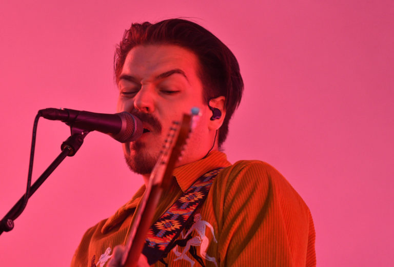 Spevák Clemens Rehbein zo skupiny Milky Chance (Nemecko) počas vystúpenia na hlavnom pódiu na Festivale Grape 2022 na trenčianskom letisku. Trenčín, 12. august 2022. Foto: SITA/Martin Medňanský