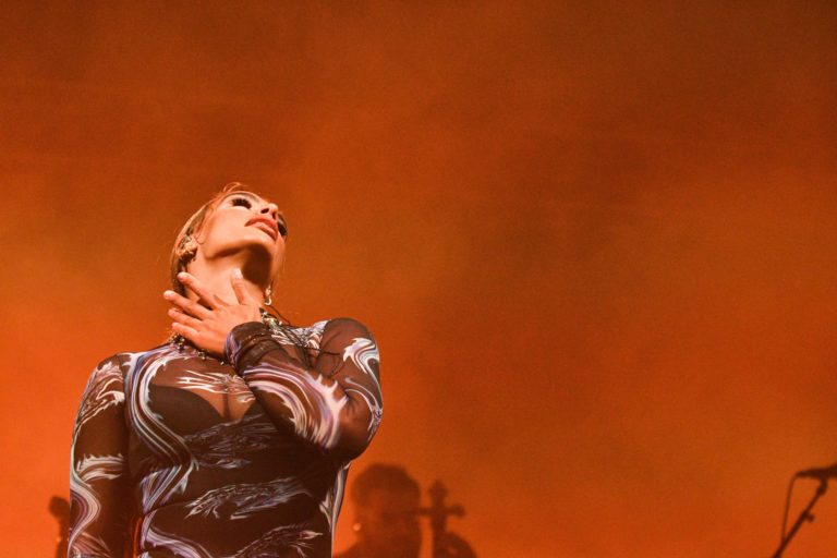 Speváčka Sevdaliza (Irán) počas vystúpenia na Festivale Grape 2022 na trenčianskom letisku. Trenčín, 12. august 2022. Foto: SITA/Martin Medňanský