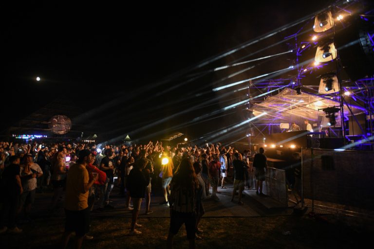 ¼udia tancujú počas vystúpenia DJ Toto Chiavettu z Talianska na Festivale Grape 2022 na trenčianskom letisku. Trenčín, 12. august 2022. Foto: SITA/Martin Medňanský