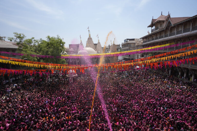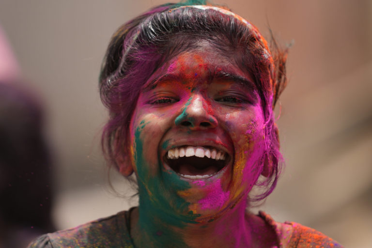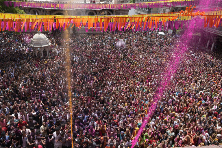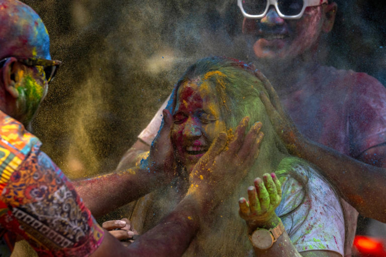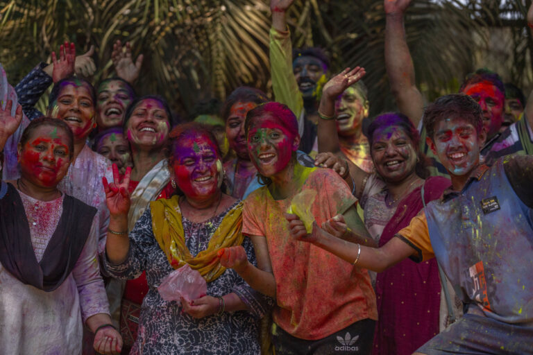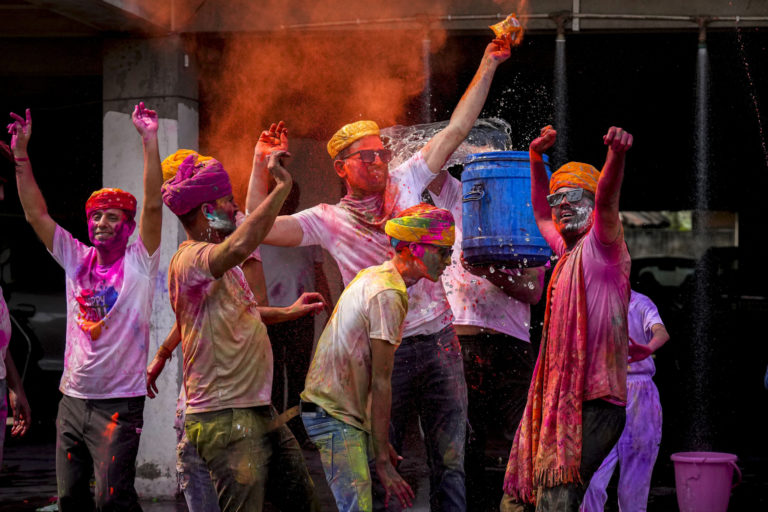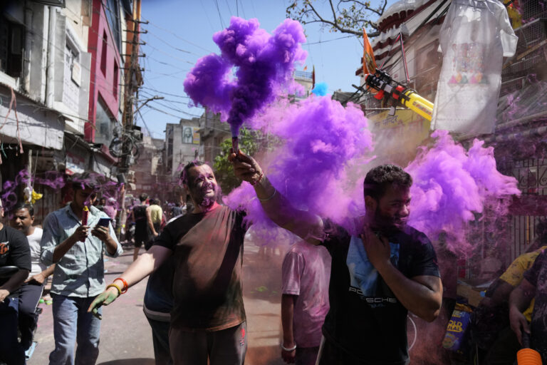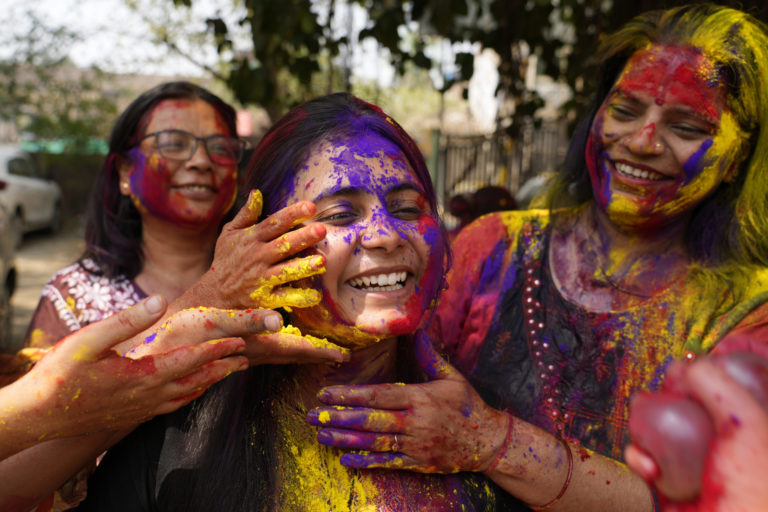 Milióny Indov doma i po svete každoročne oslavujú sviatok Holi, známy aj ako festival farieb. Patrí medzi najpopulárnejšie sviatky, korým vítajú príchod jari, novej energie a tiež si pripomínajú víťazstvo dobra nad zlom. Ahmedabad, 25. marec 2024. Foto: SITA/AP.