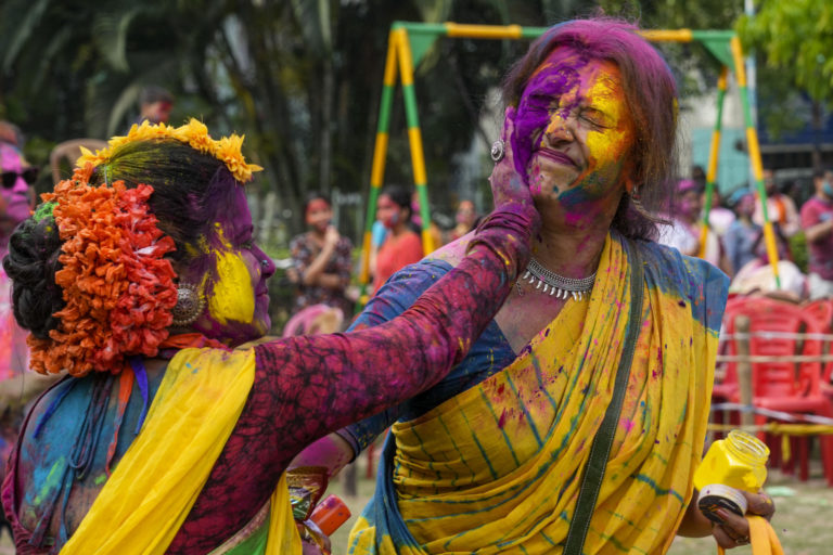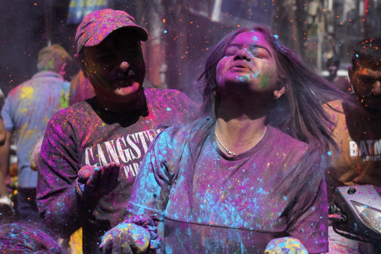 Milióny Indov doma i po svete každoročne oslavujú sviatok Holi, známy aj ako festival farieb. Patrí medzi najpopulárnejšie sviatky, korým vítajú príchod jari, novej energie a tiež si pripomínajú víťazstvo dobra nad zlom. Kolkata, 25. marec 2024. Foto: SITA/AP.