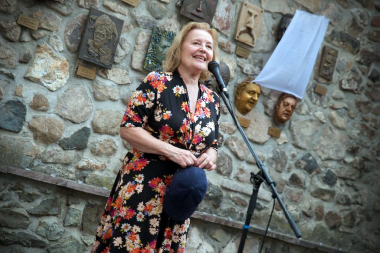 Herečka Magda Vášáryová počas odhalenia umeleckého reliéfu v Uličke slávnych nosov v rámci 42. ročníka počas európskeho festivalu humoru a satiry Kremnické gagy v Kremnici. Foto: SITA/Jakub Julény