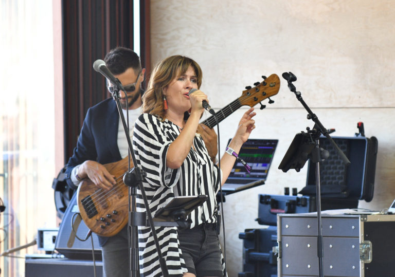 Herečka Zuzana Norisová počas koncertu Spomienka na Dana Heribana v rámci štvrtého dňa 26. ročníka multižánrového festivalu Pohoda na letisku v Trenčíne. Trenčín, 8. júl 2023. Foto: SITA/Martin Medňanský