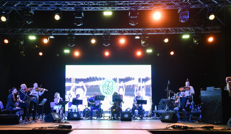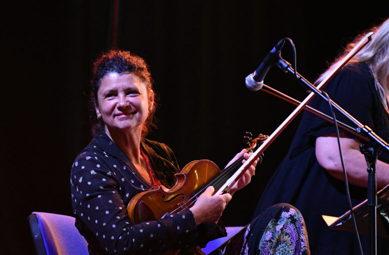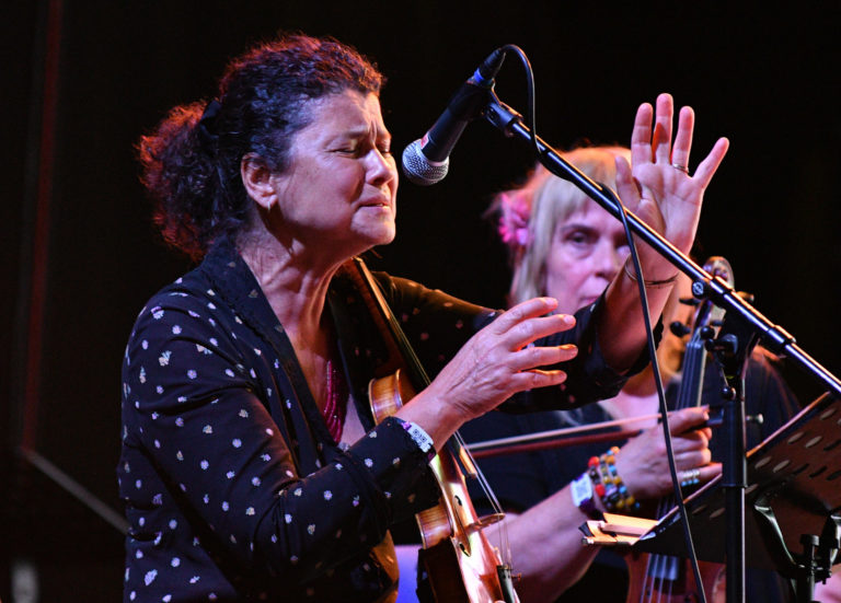 Hudobníčka Iva Bittová z Českej republiky počas vystúpenia Slovensko-nórsko-českého hudobného projektu Angrusori v rámci štvrtého dňa 26. ročníka multižánrového festivalu Pohoda na letisku v Trenčíne. Trenčín, 8. júl 2023. Foto: SITA/Martin Medňanský