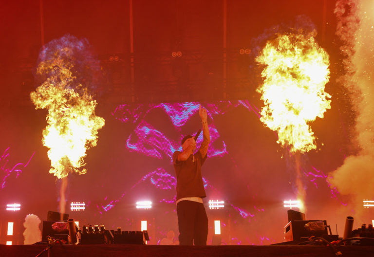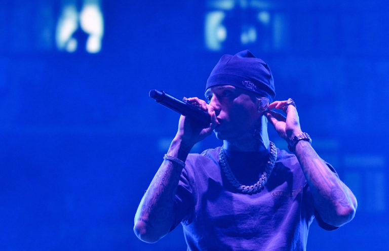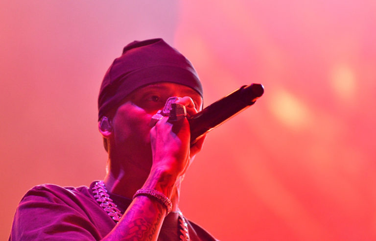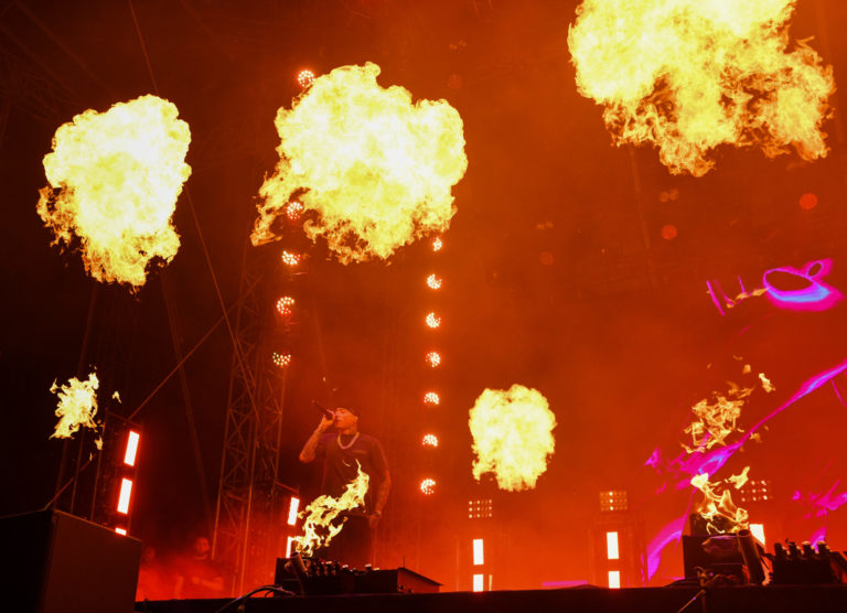 Raper Central Cee z Veľkej Británie vystupuje na hlavnom pódiu v rámci štvrtého dňa 26. ročníka multižánrového festivalu Pohoda na letisku v Trenčíne. Trenčín, 8. júl 2023. Foto: SITA/Martin Medňanský