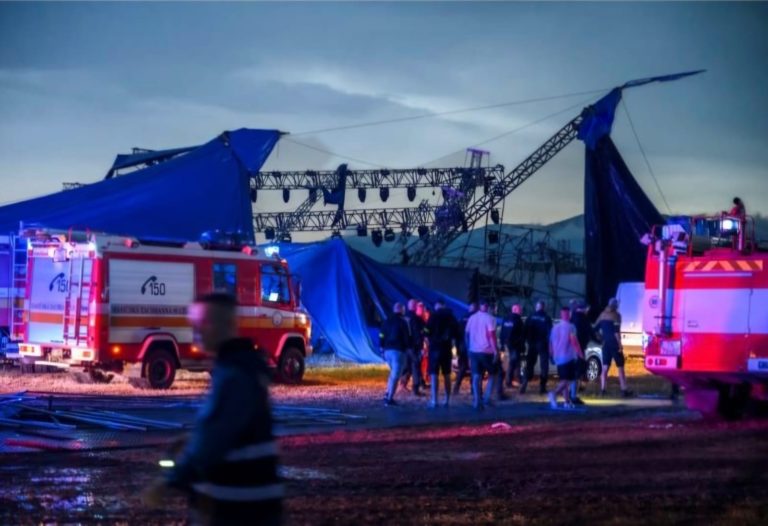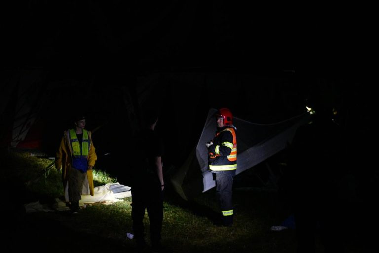 Záchranné zložky prepátravajú areál festivalu. Druhý deň 27. ročníka multižánrového festivalu Pohoda, prerušila vo večerných hodinách búrka ktorá sa prehnala areálom trenčianskeho letiska. Trenčín, 12. júl 2024. Foto: SITA/Martin Medňanský.