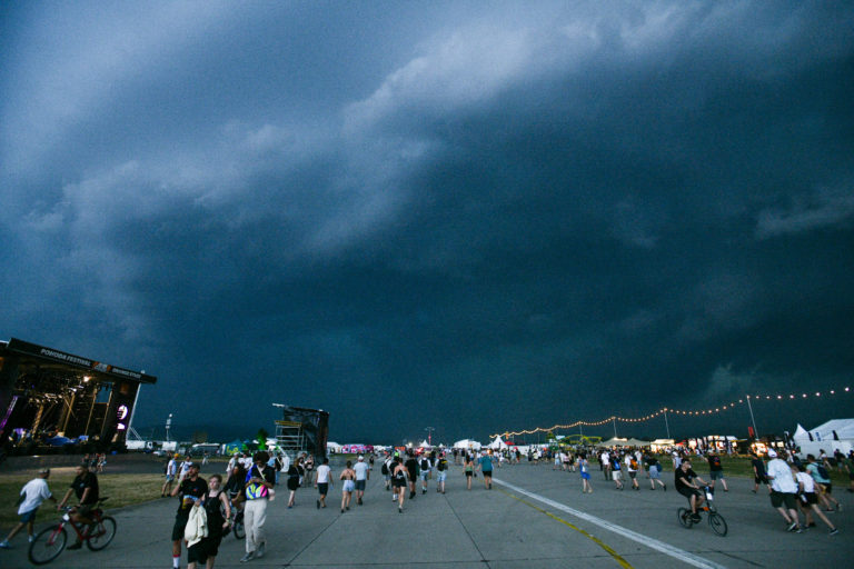 Druhý deň 27. ročníka multižánrového festivalu Pohoda, prerušila vo večerných hodinách búrka ktorá sa prehnala areálom trenčianskeho letiska. Trenčín, 12. júl 2024. Foto: SITA/Martin Medňanský.