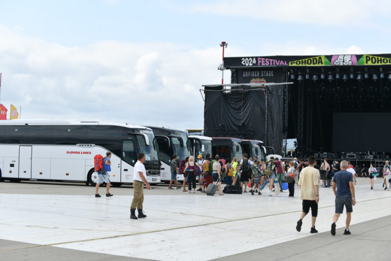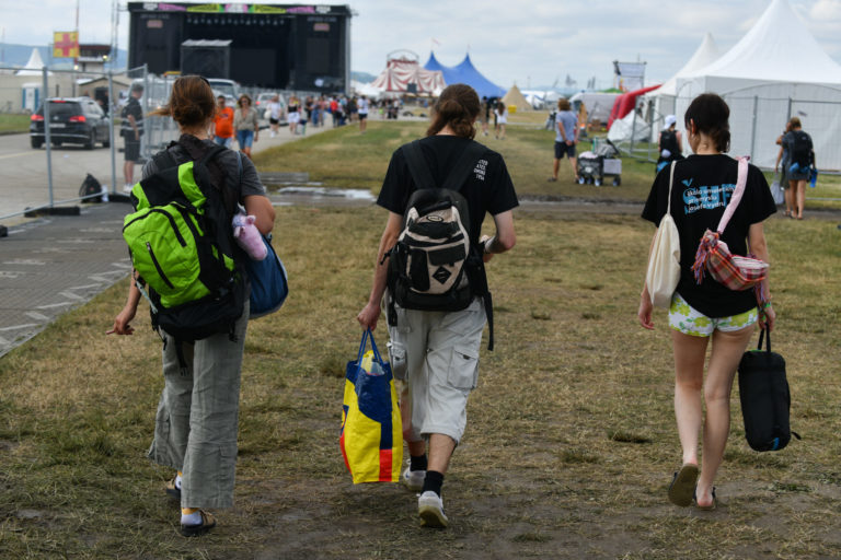 Návštevníci odchádzajú po zrušení programu 27. ročníka multižánrového festivalu Pohoda. Trenčín, 13. júl 2024. Foto: SITA/Martin Medňanský.