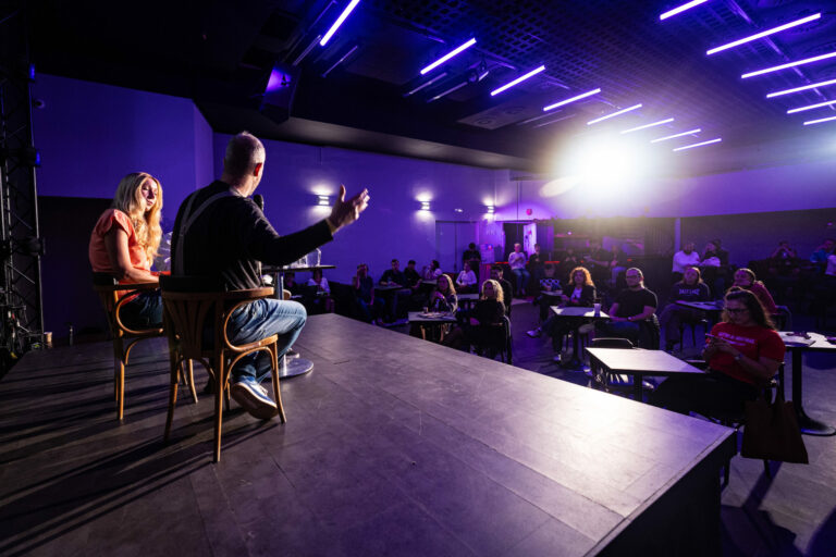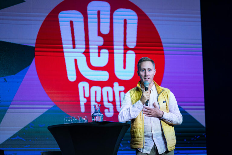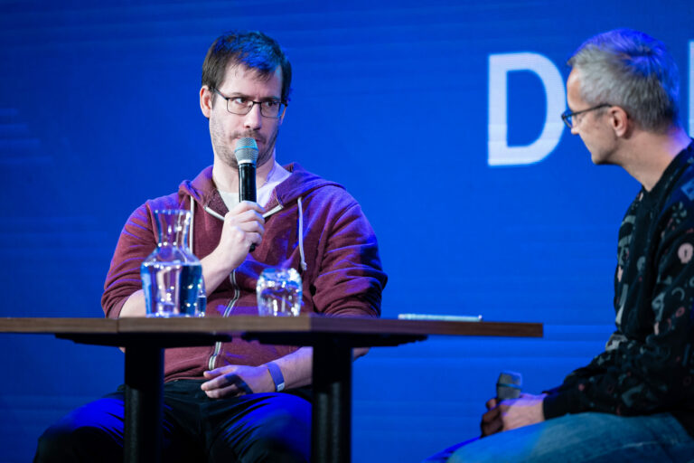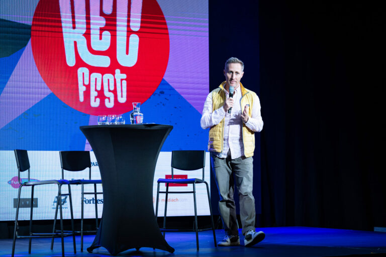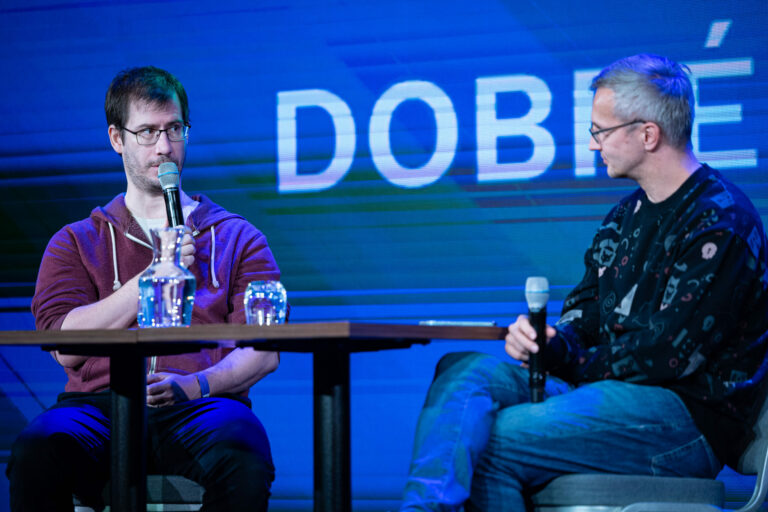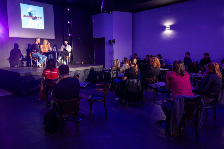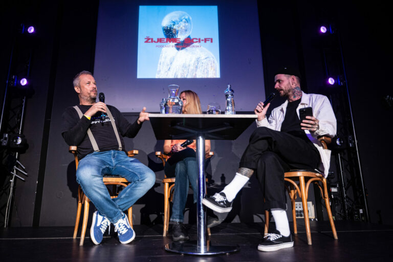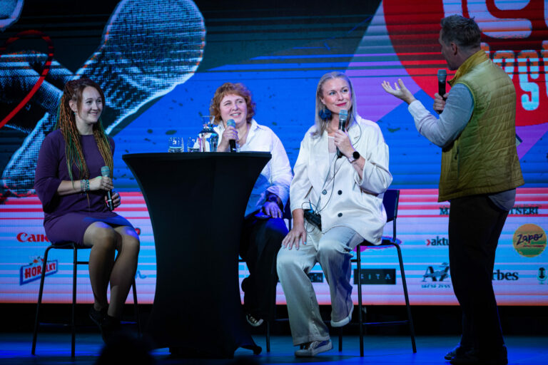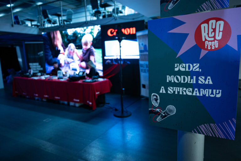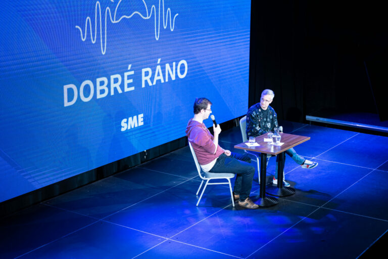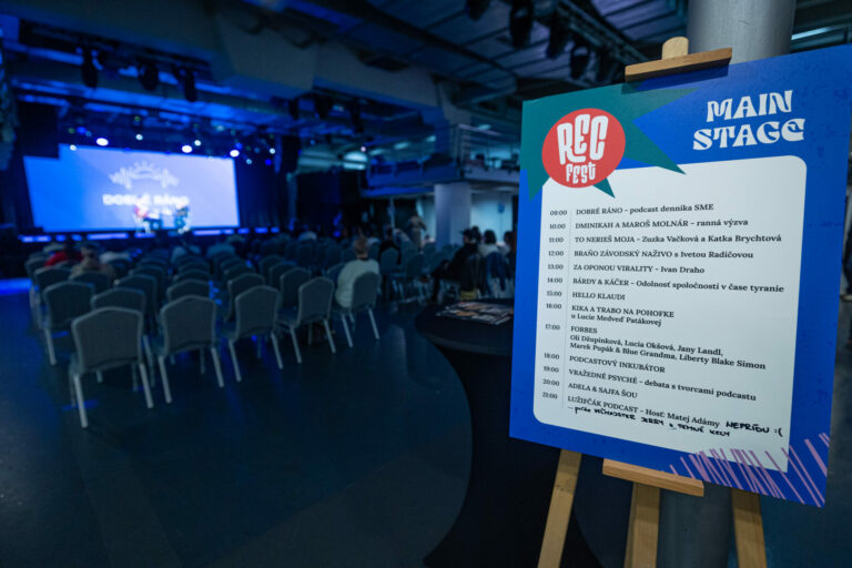 Podcast denníka SME počas festivalu RecFest v Edison Parku v Bratislave. Bratislava, 27. september 2025. Foto: SITA/Jana Birošová