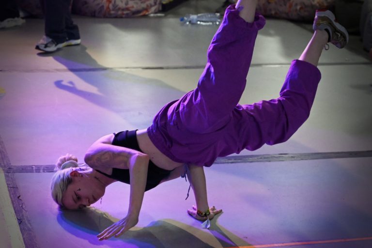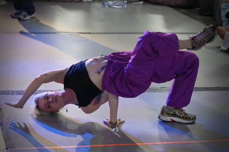 Účastníčka hiphopového festivalu The Legits Blast v klube Ministry of Fun v Banskej Bystrici. Banská Bystrica, 29. júl 2023. Foto: SITA/Jakub Julény.