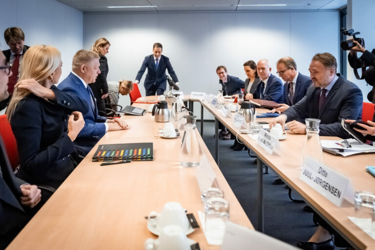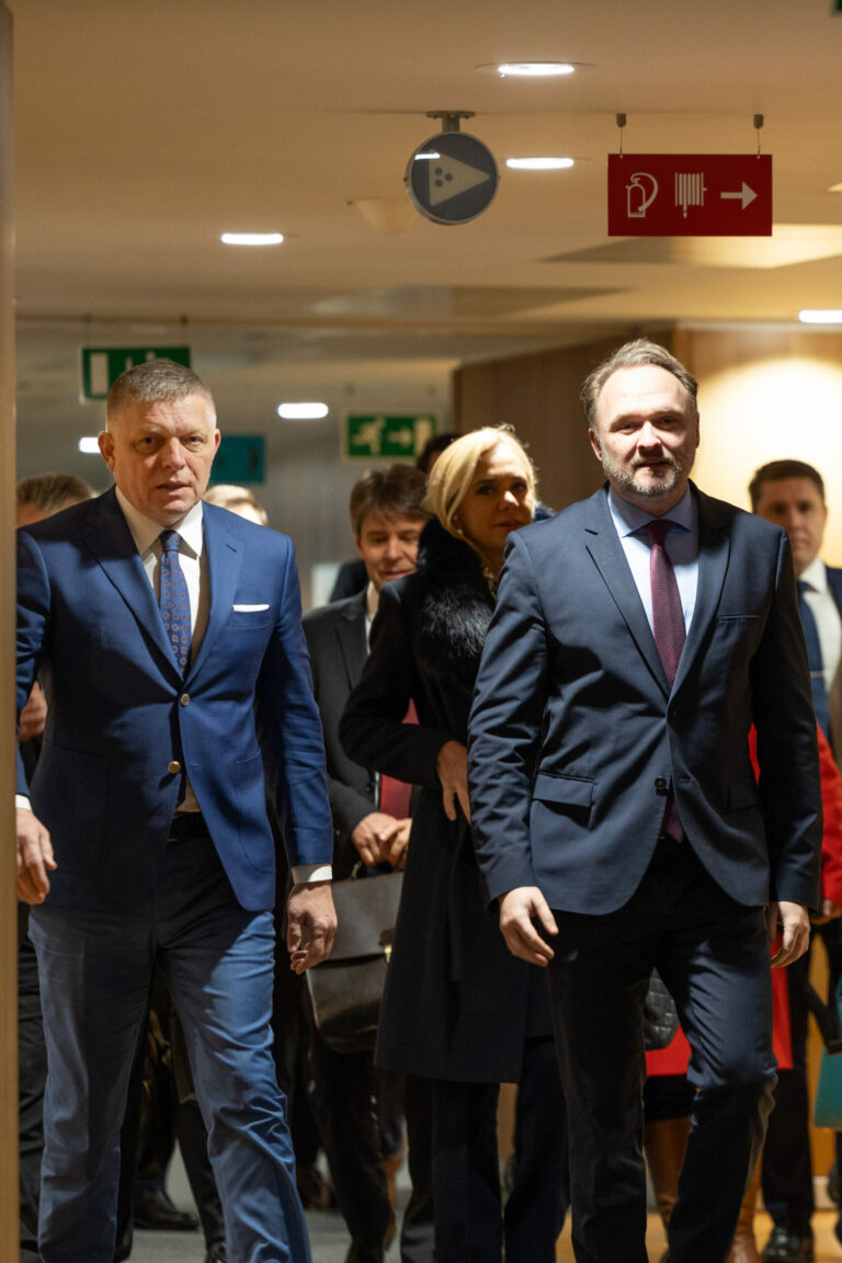 Predseda vlády SR Robert Fico (vľavo) a eurokomisár pre energetiku a bývanie Dan Jørgensen (vpravo) počas rokovania s predstaviteľmi Európskej komisie v Bruseli. Brusel, Belgicko, 9. január 2025. Foto: SITA/© Európska únia, 2025, CC BY 4.0