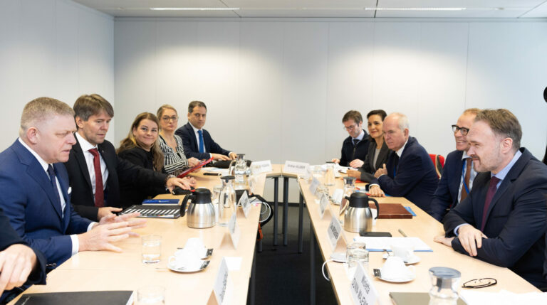 Predseda vlády SR Robert Fico (vľavo) počas rokovania s predstaviteľmi Európskej komisie v Bruseli. Brusel, Belgicko, 9. január 2025. Foto: SITA/© Európska únia, 2025, CC BY 4.0