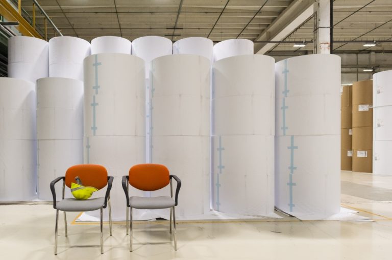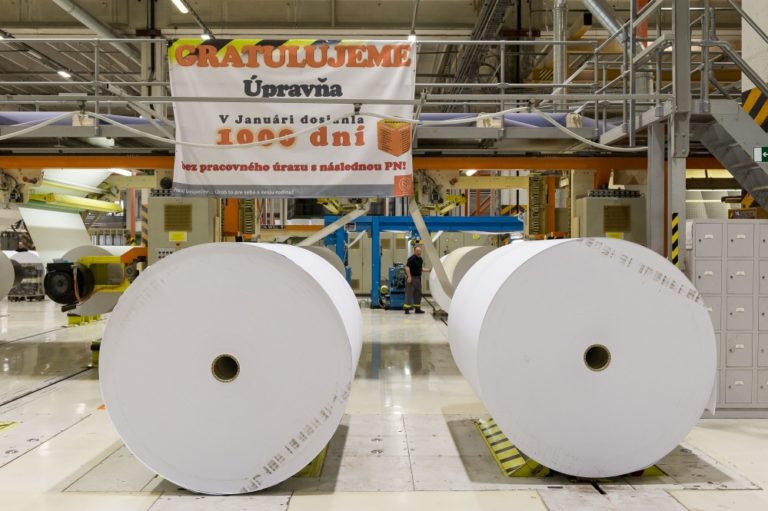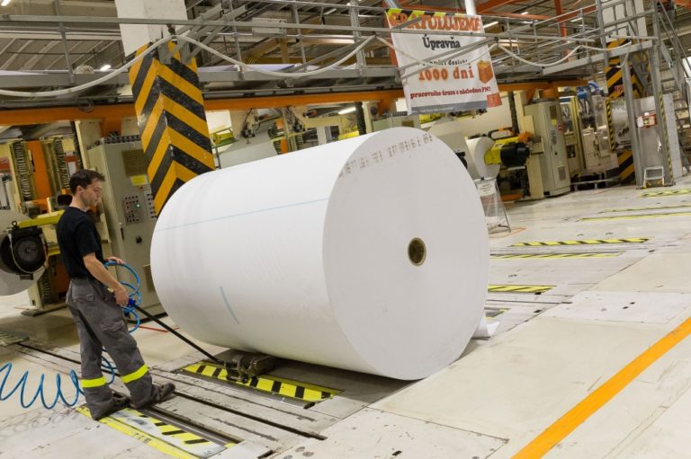 Role papiera v hale Mondi SCP v Ružomberku. Ružomberok, 16. marec 2014. Foto: SITA/Milo Fabian