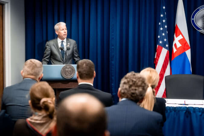 Predseda vlády Slovenskej republiky Robert Fico (v pozadí) počas podpisu dohody o spolupráci medzi vládou Slovenska a Spojených štátov amerických (USA) v oblasti civilnej jadrovej energetiky, ktorý sa uskutočnil v priestoroch Ministerstva energetiky USA. Washington, USA, 16. január 2026. Foto: SITA/Úrad vlády SR