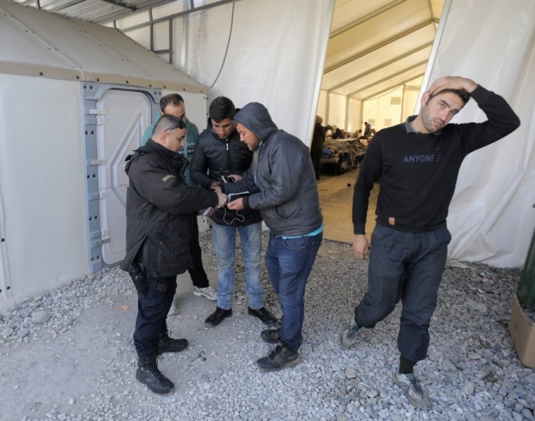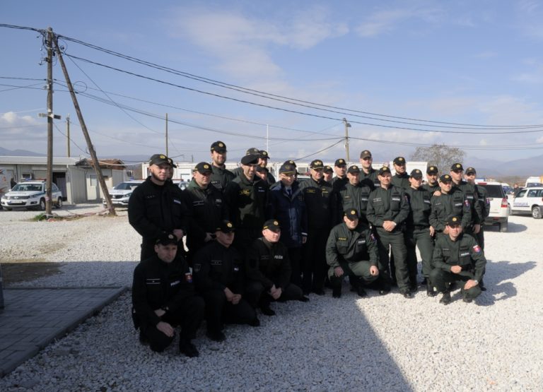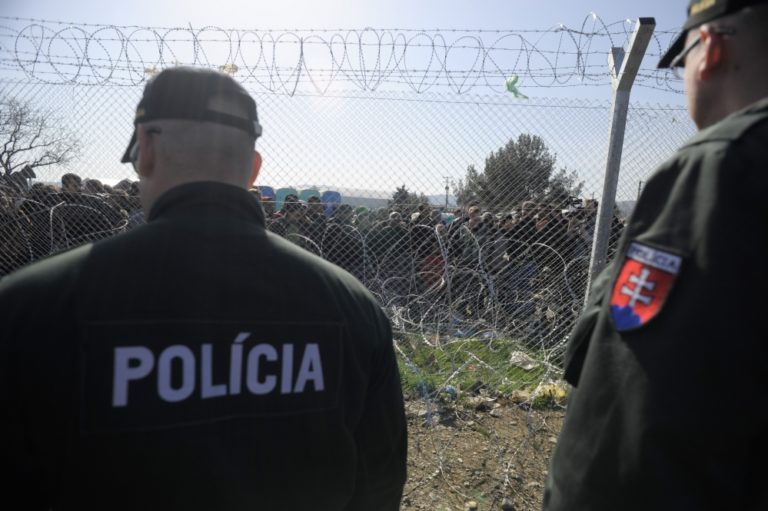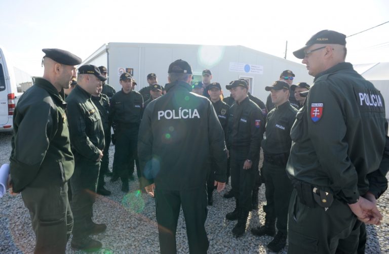 Príslušníci Policajného zboru SR v tranzitnom centre na macedónsko-gréckych hraniciach v Gevgeliji. Gevgelija, Macedónsko, 2. marec 2016. Foto: SITA/Martin Medňanský