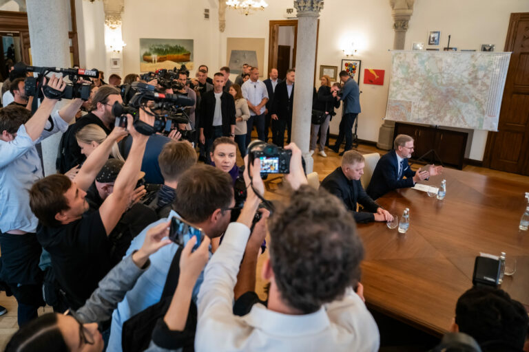 Atmosféra počas rokovania predsedníčky Európskej komisie a premiérov krajín zasiahnutých povodňami vo Vroclave v Poľsku o prijatých opatreniach a možnostiach riešenia následkov ničivých povodní, ktoré v uplynulých dňoch postihli krajiny strednej Európy. Vroclav, Poľsko, 19. september 2024. Foto: SITA/Úrad vlády SR