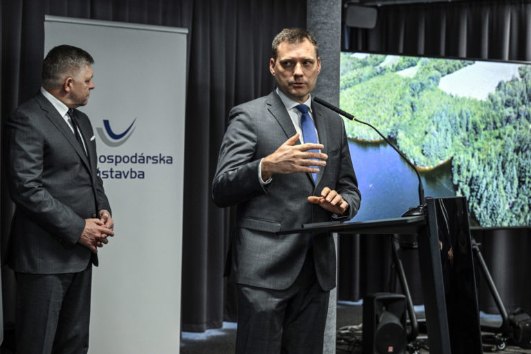 Zľava: Predseda vlády Robert Fico a minister životného prostredia Tomáš Taraba. Foto: Archívne, SITA/Milan Illík