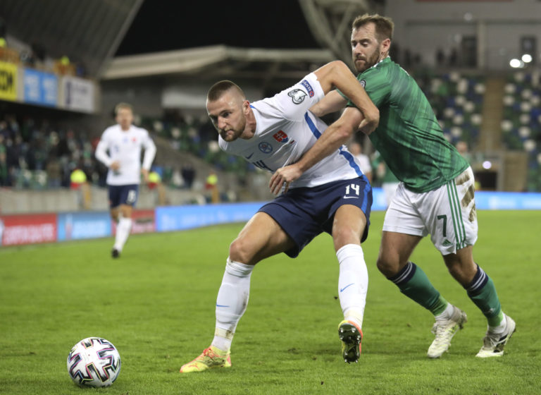 Slovák Juraj Kucka vo finále baráže o postup na odložené majstrovstvá Európy 2020 medzi Severným Írskom a Slovensko. Foto: SITA/AP