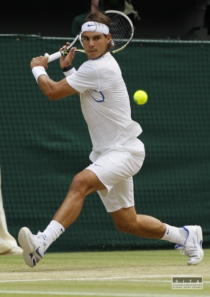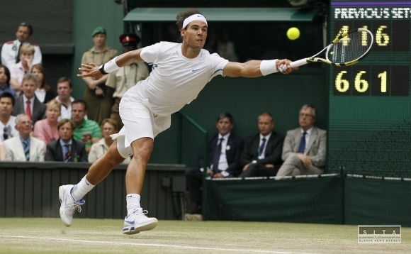 Španielsky tenista Rafael Nadal počas finále dvojhry mužov na treťom grandslamovom turnaji tenisovej sezóny Wimbledone v Londýne (20. júna - 3. júla, celková dotácia 14,6 milióna libier, tráva) v súboji s Novakom Djokovičom zo Srbska. Foto: SITA/AP