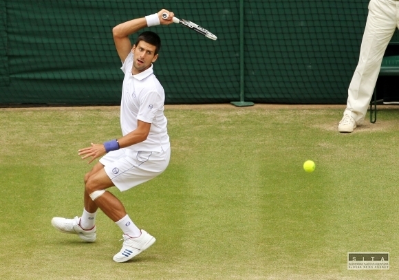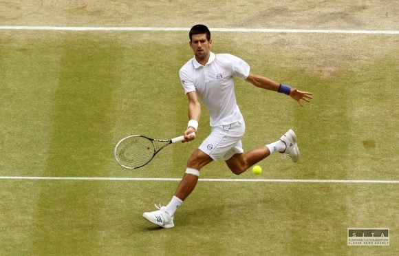 Srbský tenista Novak Djokovič počas finále dvojhry mužov na treťom grandslamovom turnaji tenisovej sezóny Wimbledone v Londýne (20. júna - 3. júla, celková dotácia 14,6 milióna libier, tráva) v súboji s Rafaelom Nadalom zo Španielska. Foto: SITA/AP