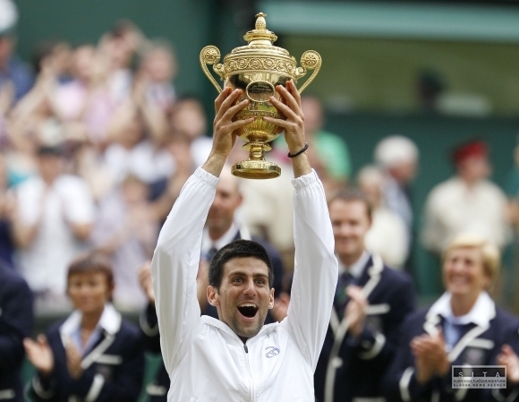 Srbský tenista Novak Djokovič oslávil post jednotky víťazstvom na tohtoročnom Wimbledone proti Rafaelovi Nadalovi zo Španielska. Foto: SITA/AP