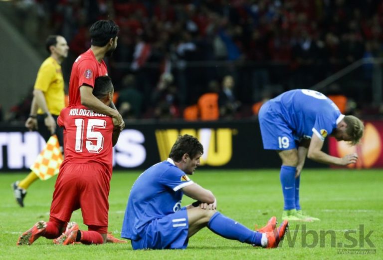 Otrasený Matheus z Dnipra Dnipropetrovsk počas finálového zápasu Európskej ligy. Varšava, 27. máj 2015. Foto: SITA/AP